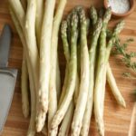 - Spárga: Párolt vagy grillezett spárga darabok édes-földes ízzel és enyhe roppanóssággal.