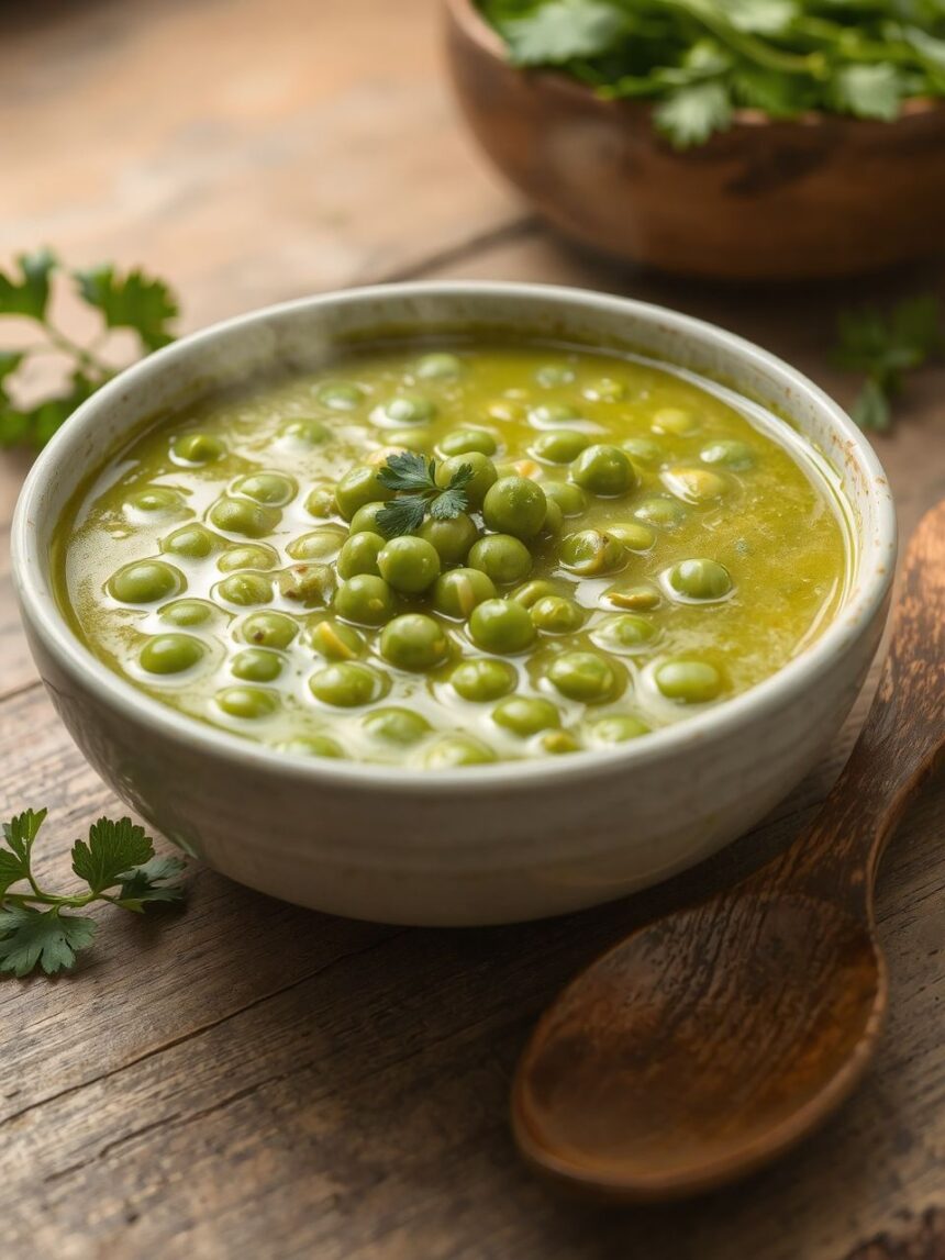 - Borsó egy részének turmixolása: A főzés végén vegyünk ki a borsópörköltből egy-két merőkanállal, turmixoljuk le, majd keverjük vissza az ételbe. Ez sűríti és krémesíti az ételt, miközben intenzívebb borsóízt ad.