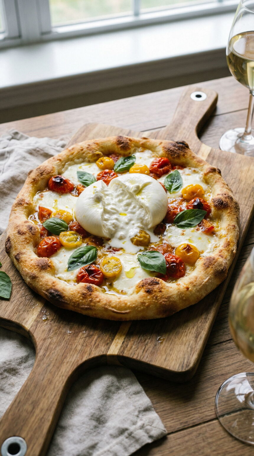 Ez a burrata pizza több mint egy egyszerű recept – ez egy élmény, amit megoszthatsz a szeretteiddel. Tapasztalataim szerint tökéletes romantikus vacsorához: gyertyafény, egy pohár bor, és ez a csodálatos pizza – garantáltan emlékezetes este lesz belőle. De ugyanilyen jól működik egy laza hétvégi ebédnél is, amikor a család összegyűlik, és mindenki egy szelet után nyúl.