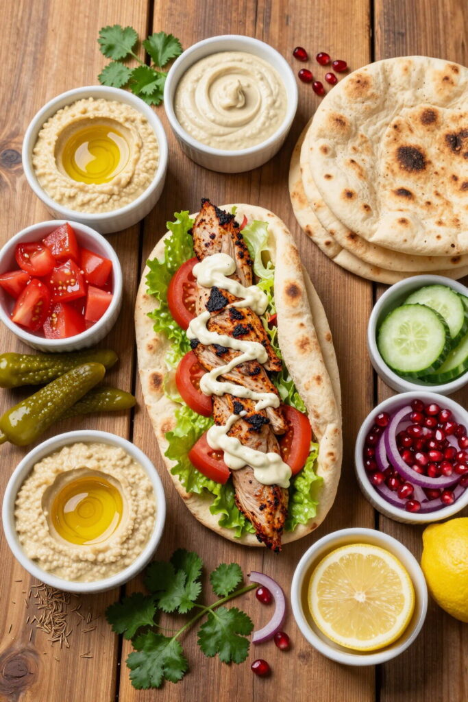 A shawarma igazi élménnyé akkor válik, amikor a megfelelő köretekkel és szószokkal tálalod. A klasszikus közel-keleti módszer szerint puha pitába töltve szolgálják fel, de otthon tortilla lapban is fantasztikus, ha az egyszerűségre törekszel. A legfontosabb kísérők közé tartozik a humusz – ez a krémes csicseriborsókrém tökéletesen kiegyensúlyozza a fűszeres húst, és nyugodtan használhatod mártogatósként vagy kenegetőként is.